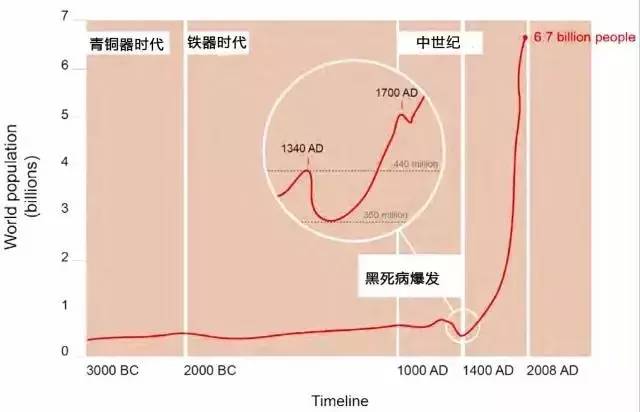 縱觀歷史,生活在20世紀之前的人類非常害怕傳染性疾病,這些疾病往往是致命的。例如14世紀的黑死病,奪走了七成歐洲人的生命。從圖表中我們可以看到,黑死病造成了較大規(guī)模的人口損失。不過隨著時間的推移,控制傳染病的能力的加強,這類疾病產(chǎn)生的影響將會越來越小,不再可怕。
