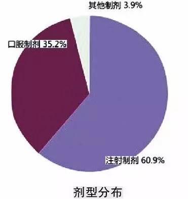 從涉及藥品劑型看,注射劑報告數在2014年比例仍然較高,占60.9%,較2013年提高2.2個百分點;口服制劑比例占35.2%。