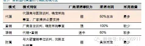 營銷渠道上以代理為主,直銷為輔。目前體外診斷行業(yè)企業(yè)主要選擇三種銷售模式來銷售產(chǎn)品:自建渠道、通過專業(yè)經(jīng)銷商或與產(chǎn)業(yè)鏈上大額營銷單位(如體外診斷儀器生產(chǎn)商)進行優(yōu)勢互補來銷售其產(chǎn)品。幾種模式在產(chǎn)業(yè)鏈的利潤分配上有所不同。直銷模式中,企業(yè)能更貼近終端客戶,更有效了解醫(yī)院需求,增強客戶黏性,但費用較高;而代理制模式下一般企業(yè)會以終端價格的一定比例向經(jīng)銷商供貨,由經(jīng)銷商處理各種費用;第三種附屬大額營銷單位的則通常是有一定產(chǎn)品優(yōu)勢但缺乏一定渠道的小型創(chuàng)新型試劑生產(chǎn)公司的經(jīng)營模式。