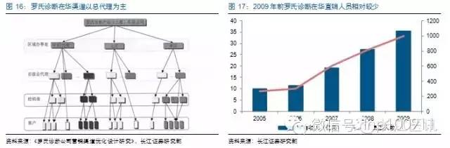 目前我國體外診斷試劑生產(chǎn)企業(yè)約300~400 家,其中規(guī)模以上企業(yè)近200 家,但年銷售收入過億元的企業(yè)僅約20 家,企業(yè)普遍規(guī)模小、品種少。而各下游單位或組織較為分散且需求不同,因此采用直銷渠道營銷產(chǎn)品的成本相對較高,企業(yè)往往選擇成本相對較低的代理商模式。即使規(guī)模大如羅氏診斷,其進入中國后最早選擇的依舊是總代理為主,2008年后才慢慢介入直營團隊。