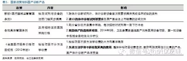 對體外診斷的收費政策逐步清晰,2012年初步確立的《全國醫(yī)療服務(wù)價格項目規(guī)范(2012年版》目前仍在對接過程中,預計各地將陸續(xù)正式公布,雖然各地具體實施進度有所不同,但檢驗項目不按方法學收費的方向基本確定。先進方法學將不能收取更高的費用,整體檢驗項目收費將走低,鼓勵醫(yī)院使用性價比高國內(nèi)產(chǎn)品。