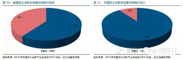 集中度相對較低,空間廣闊。美國獨立診斷實驗室發(fā)展已相對成熟,在550億美元的醫(yī)學檢測市場中約占35%份額,且為Quest、Labcorp等大型診斷公司所壟斷,其中Quest占比25.71%,Labcorp42.86%。國內(nèi)獨立診斷試驗室集中度相對較小,2013年收入占醫(yī)學診斷市場的比例約為3%。假如以美國IVD行業(yè)占比測算國內(nèi)IVD當前的市場空間即有600億元,市場空間廣闊。