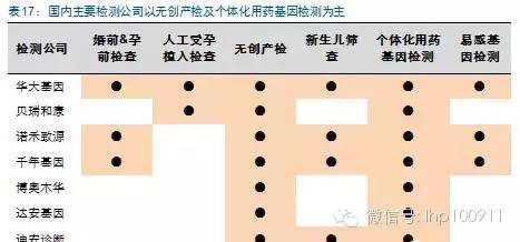 國內(nèi)目前基因檢測技術(shù)主要運用于個體化用藥基因檢測與無創(chuàng)產(chǎn)前DNA檢測,兩者均是未來個體化醫(yī)療的重要前提。無創(chuàng)產(chǎn)檢是未來新生嬰兒重要的個體化醫(yī)學檢測,個體化用藥基因檢查則是更為直接的個體化診斷措施。