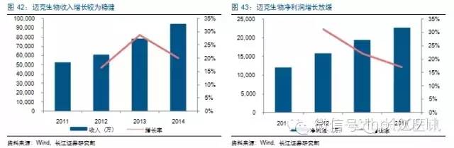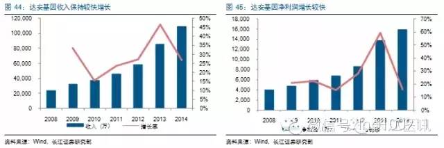 公司生化檢測起步,現(xiàn)有127項生化診斷試劑,3種11規(guī)格全自動生化分析儀,涵蓋11類生化檢測項目。技術(shù)儲備豐富,在研診斷酶14項、抗原抗體11項目、生化試劑7項、免疫試劑14項(其中化學發(fā)光10項)、配套化學發(fā)光儀及POCT設(shè)備4項目,未來不排除進軍分子檢測領(lǐng)域。近年公司生化檢測增長迅速,三年CAGR在40%以上,未來若外延布局免疫、分子等高端領(lǐng)域,想象空間廣闊。(市值:美康128億元,達安301億元;2014年凈利潤:美康1.37億元,達安1.59億元;市占率:美康2.13%,達安2.44%)。