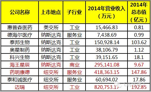 個尷尬的話題,你知道全球第二大醫(yī)藥市場目前在海外資本市場上市的藥企,即我們所說的“中概醫(yī)藥股”還剩幾家?據(jù)E藥經(jīng)理人統(tǒng)計:截至2014年底是9家,但更尷尬的是,其中3家現(xiàn)在已經(jīng)正式啟動了私有化退市進程。表:海外上市中概醫(yī)藥股一覽(單位:人民幣)