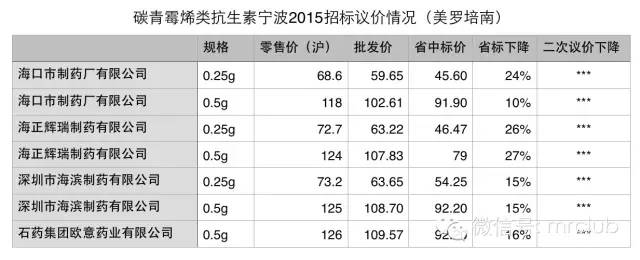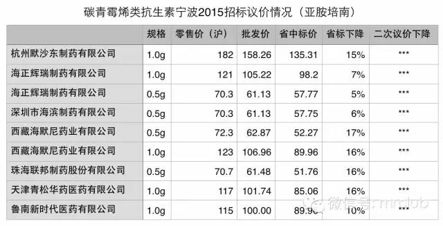 今年可能半數(shù)藥企尤其是外企低估了招標(biāo)帶來的市場準(zhǔn)入的威脅,下面以碳青霉烯類抗生素在從浙江省標(biāo)到寧波二次議價為例,看看各企業(yè)情況。