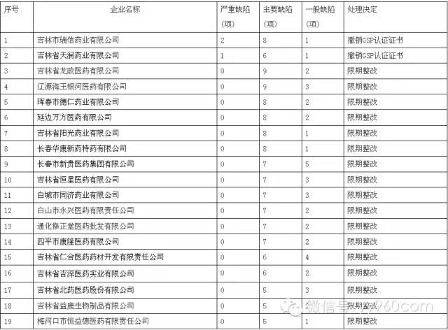 吉林省食品藥品監(jiān)督管理局關(guān)于19家藥品批發(fā)企業(yè)飛行檢查情況的通告