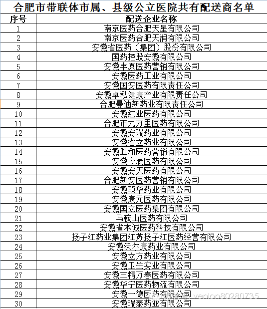 合肥市帶聯(lián)體市屬公立醫(yī)療機構(gòu)配送商