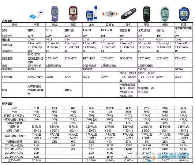 圖表:各品牌血糖儀對(duì)比分析