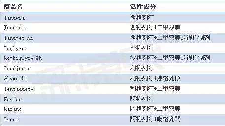 目前,含DPP-4抑制劑的藥物包括單一制劑和與其他降糖藥物(如二甲雙胍等)聯(lián)合的復合制劑。