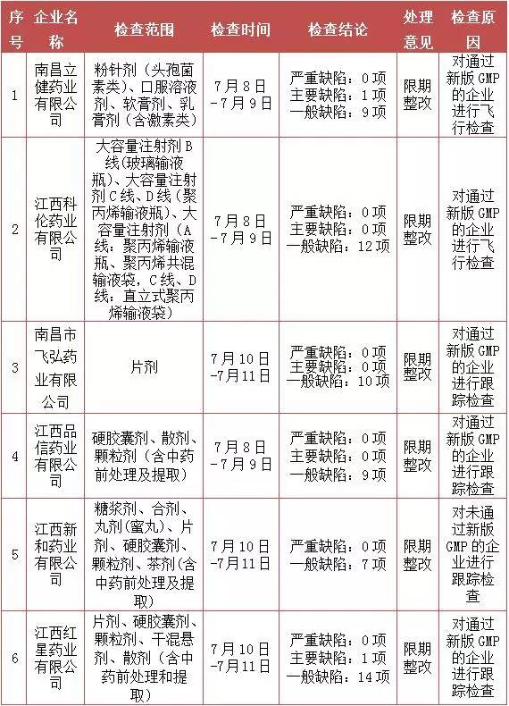 這6家藥品生產(chǎn)企業(yè)均存在著一般缺陷或是主要缺陷,藥監(jiān)局的處理意見是限期整改!