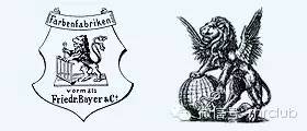 拜耳的第一個商標圖案是只獅子站在圣勞倫斯殉難的架子上。這個商標是根據德國愛伯福市(Elberfeld)的盾形紋章所設計,那兒是當時拜耳總部的據點。然而,公司不斷擴展,必須反映在新的企業標志上,到了1886年,這些較為簡單的商標已不敷應用。