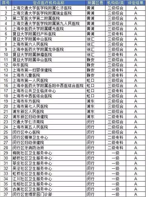 根據(jù)國家人力資源社會保障部《關(guān)于實行基本醫(yī)療保險定點醫(yī)療機(jī)構(gòu)分級管理的意見》(人社廳發(fā)〔2010〕9號)的精神和本市《關(guān)于印發(fā)<上海市基本醫(yī)療保險定點醫(yī)療機(jī)構(gòu)分級管理試行辦法>的通知》有關(guān)規(guī)定,經(jīng)本市醫(yī)保管理部門組織評定,擬確定37家定點醫(yī)療機(jī)構(gòu)為醫(yī)保A級定點醫(yī)療機(jī)構(gòu),現(xiàn)公示如下:
