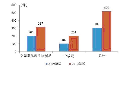 2012版國家基本藥物涵蓋藥物品種數量較上版明顯增加,其中中藥品種比例上升,并新增部分大病種藥品及兒科用藥。