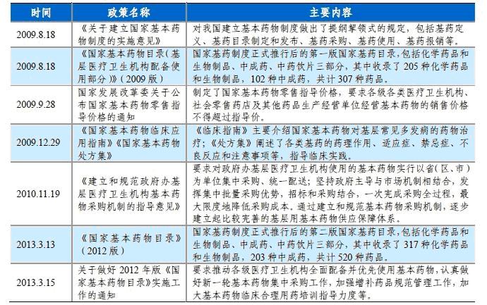 20133月衛計委發布93號令公告《國家基本藥物目錄》(2012年版),隨后廣東、吉林等省相繼公布了地方增補目錄,新版基藥目錄藥品數量較2009版有所擴充,使用范圍也較上一版有所擴大,且伴隨各省招標政策的陸續出臺,將對未來2~3年中國醫藥行業運行情況產生重要影響。
