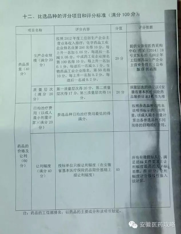 總分100分:價格分為50分,質量及國家基藥30分,專家評分20分。