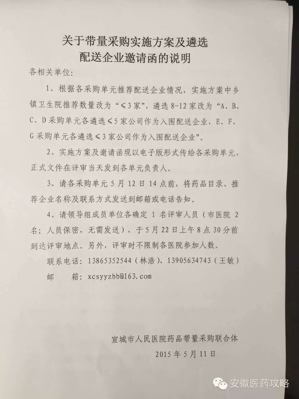 2、安慶區域最近陸陸續續各家醫院報品種,5月22日傳出消息:啟動“帶量采購”工作;