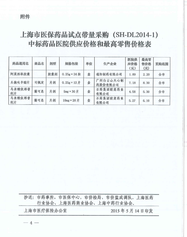近期上海市醫保辦、衛計委、物價局發布了《關于公布執行上海市醫保藥品試點帶量采購中標結果有關問題的通知》,通知規定本次帶量采購試點品種將于6月1日開始執行。