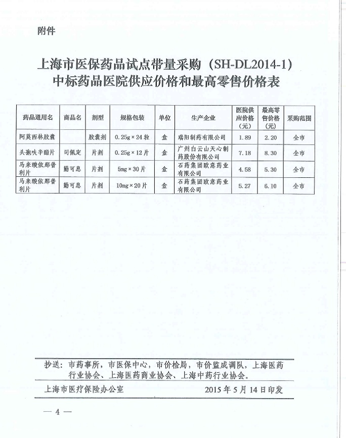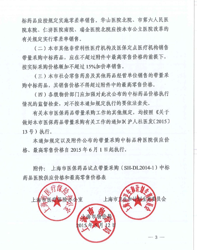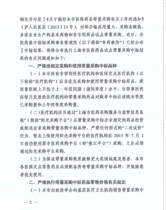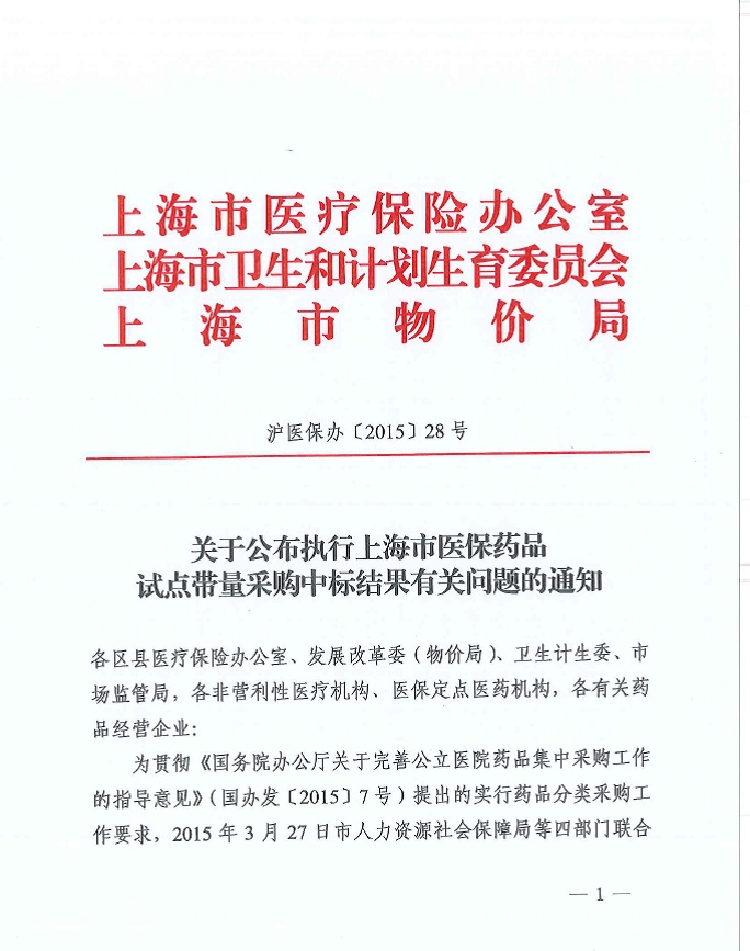 關于公布執(zhí)行上海市醫(yī)保藥品試點帶量采購中標結果有關問題的通知