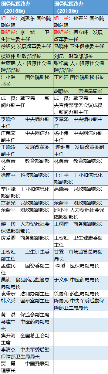 對比一下2016年國務院深化醫改領導小組成員,發現除了領導人有變化以外,由相關部委負責人擔任副組長的排序也有了變化。