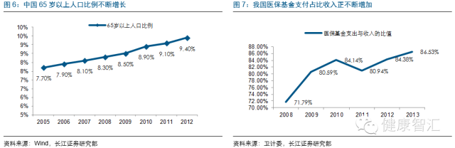 第二、我國人口老齡化加速,醫(yī)?;鹗罩胶鈮毫θ找嫱癸@。我國自2001年開始進(jìn)入老齡化社會(huì),即65歲以上人口比例超過7%,且老齡化速度快于世界平均水平。據(jù)聯(lián)合國預(yù)測,到2020年中國老齡人口將達(dá)1.67億人,約占全世界老齡人口6.98億人的24%。而由于老齡人口一方面病癥高發(fā)增加醫(yī)療剛需,另一方面不再繳納五險(xiǎn)一金,意味著我國醫(yī)?;饘⑷氩环蟪?,未來壓力倍增。