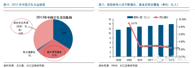 第一、全民醫(yī)保的制度體系,決定了醫(yī)?;鸪袚?dān)了主要支付重任。我國從1998年開始城鎮(zhèn)職工基本醫(yī)保制度,目前已形成以城鎮(zhèn)職工醫(yī)保、城鎮(zhèn)居民醫(yī)保、新農(nóng)合、城鄉(xiāng)居民大病保險(xiǎn)為主的基本醫(yī)保體系,2013年參保人數(shù)已達(dá)13.72億,基本實(shí)現(xiàn)全民覆蓋,決定了政府醫(yī)?;鹗俏覈t(yī)療支付的主體。