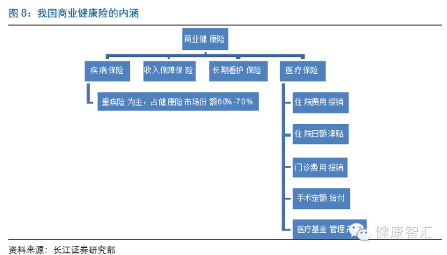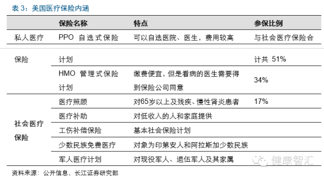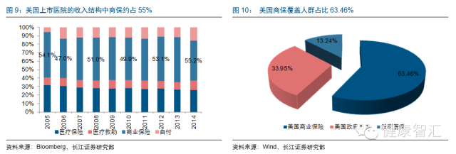 在我國的醫(yī)療保險(xiǎn)支付格局中,商業(yè)保險(xiǎn)公司賠付僅占約1.4%,我們參考美國醫(yī)療保障覆蓋人群中,商業(yè)健康險(xiǎn)覆蓋了約63.46%人群、占比醫(yī)療費(fèi)用支出約35%,美國上市醫(yī)院來自商業(yè)保險(xiǎn)的收入約55.2%??梢灶A(yù)見,我國商業(yè)健康險(xiǎn)亟待發(fā)力,面臨十倍以上的成長空間。