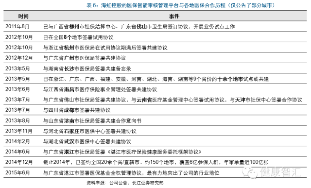 PBM系統(tǒng)的控費(fèi)審核僅僅是海虹控股的叩金石,由控費(fèi)向掌握數(shù)據(jù)資源、醫(yī)療落地服務(wù)資源,進(jìn)而向綜合醫(yī)療服務(wù)延伸才是其核心宗旨。2015年6月11日,海虹控股公告與湛江簽署《湛江市基本醫(yī)療保險(xiǎn)支付審核服務(wù)委托協(xié)議》,全權(quán)委托海虹作為專業(yè)服務(wù)機(jī)構(gòu)進(jìn)行湛江市醫(yī)?;饘徍恕⒅Ц?、評價(jià)以及參保人服務(wù)等,標(biāo)志著海虹PBM業(yè)務(wù)從“控費(fèi)”升級為“醫(yī)?;鹑珯?quán)管理”,是屬國內(nèi)首創(chuàng),體現(xiàn)出公司強(qiáng)大的頂層資源整合能力,有望在其他核心合作城市大范圍異地復(fù)制,具有劃時(shí)代意義!