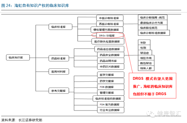 第二、數(shù)百人臨床團(tuán)隊(duì)對醫(yī)生行為進(jìn)行分析,實(shí)時(shí)增補(bǔ)自有知識產(chǎn)權(quán)的臨床風(fēng)控引擎。我國醫(yī)保支出浪費(fèi)主要體現(xiàn)在臨床,這是由于規(guī)則性的控費(fèi)標(biāo)準(zhǔn)可通過大數(shù)據(jù)直接篩查,而臨床性的規(guī)則涉及到醫(yī)學(xué)行為,需要專業(yè)的臨床人員進(jìn)行合理性甄別。海虹控股擁有超過400人的臨床團(tuán)隊(duì),通過分析海量人群的醫(yī)保診療記錄,并與中華醫(yī)學(xué)會(huì)、中華藥學(xué)會(huì)、衛(wèi)生部醫(yī)院管理研究所合作,提取了自有知識產(chǎn)權(quán)的臨床知識庫,包括中醫(yī)診斷標(biāo)準(zhǔn)、西醫(yī)診斷標(biāo)準(zhǔn)、慢病管理方案、DRGS分組庫、藥品適應(yīng)癥數(shù)據(jù)庫等,對臨床數(shù)據(jù)庫提供實(shí)時(shí)增補(bǔ)服務(wù)。目前,海虹的臨床風(fēng)控引擎涵蓋臨床規(guī)則及數(shù)據(jù)字典條目達(dá)數(shù)萬條、1200余種常見疾病、覆蓋中國各省市大部分常用藥物。