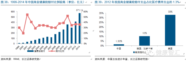 因此,我國商業(yè)健康險(xiǎn)一直是平穩(wěn)增長,未能迎來真正的爆發(fā),較之美國等發(fā)達(dá)國家,我國健康險(xiǎn)在醫(yī)療衛(wèi)生費(fèi)用總支出中面臨十倍以上增長空間,且我國商業(yè)健康險(xiǎn)歷年平均賠付比例接近50%(60%是一般性盈虧平衡線),這還主要是針對健康人群市場,倘若商業(yè)保險(xiǎn)公司未來針對患病人群,極有可能面臨嚴(yán)重虧損。